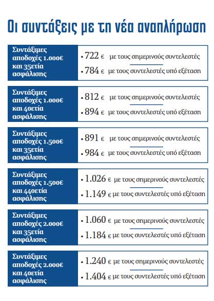 Δεδομένου ότι το Ασφαλιστικό θα ψηφιστεί τον Ιανουάριο, μαζεύονται ήδη αναδρομικά τεσσάρων μηνών. Με το επικρατέστερο σενάριο, η δομή του συστήματος υπολογισμού αναμένεται να παραμείνει ίδια, ενώ θα ενισχυθούν οι συντελεστές της ανταποδοτικής σύνταξης με στόχο να οδηγούν σε αναπλήρωση 50%-51% για 40 έτη ασφάλισης (έναντι 42,80% σήμερα) και 40%- 40,5% για 35ετία ασφάλισης (έναντι 33,81% σήμερα).