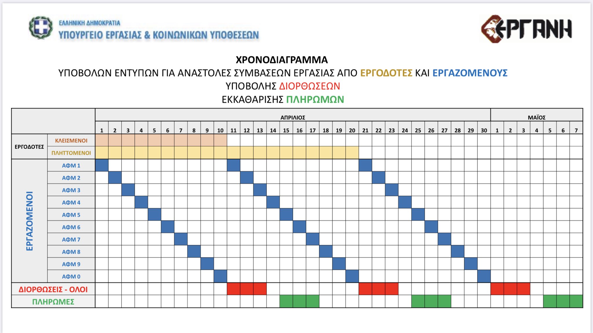 Για να διευκολύνουμε εργαζόμενους,επιχειρήσεις & λογιστές παρουσιάζουμε τον παρακάτω πίνακα με χρονοδιάγραμμα υλοποίησης: