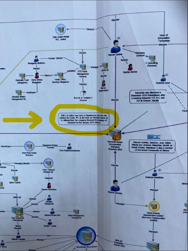 «Ο Μιωνής, στην προσπάθεια του να δείξει ότι ήταν θύμα δικό μου και όχι των Πλεύρη και Βορίδη, αναφέρθηκε στη δήθεν ανεξάρτητη έκθεση του Μ. Κάμπο. Αυτός σύμφωνα με εκτενές δημοσίευμα του Spiegel, εκτός από το ότι ήταν δικηγόρος του Μιωνή, βρέθηκε και ο ίδιος και η γυναίκα του με off shore σε Παναμά, Ουρουγάη, Βερμούδες κλπ. Με διαδρομές χιλιάδων ευρώ που καταλήγουν στον ίδιο και στη σύζυγό του», ανέφερε, σύμφωνα με πηγή του ΣΥΡΙΖΑ στην προανακριτική επιτροπή, ο κ. Παπαγγελόπουλος.