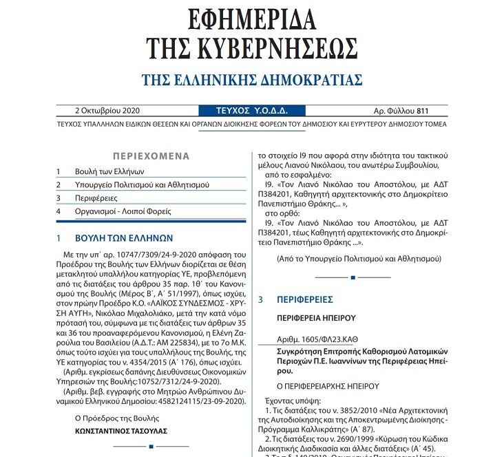Η απόφαση φέρει την υπογραφή του Προέδρου της Βουλής Κωνσταντίνου Τασουλα, ο οποίος όμως φέρεται να είχε «δεμένα» τα χέρια, καθώς ο διορισμός στηρίχθηκε σε διατάξεις του κανονισμού της Βουλής - Οι αντιδράσεις των κομμάτων🕛 χρόνος ανάγνωσης: 5 λεπτά ┋