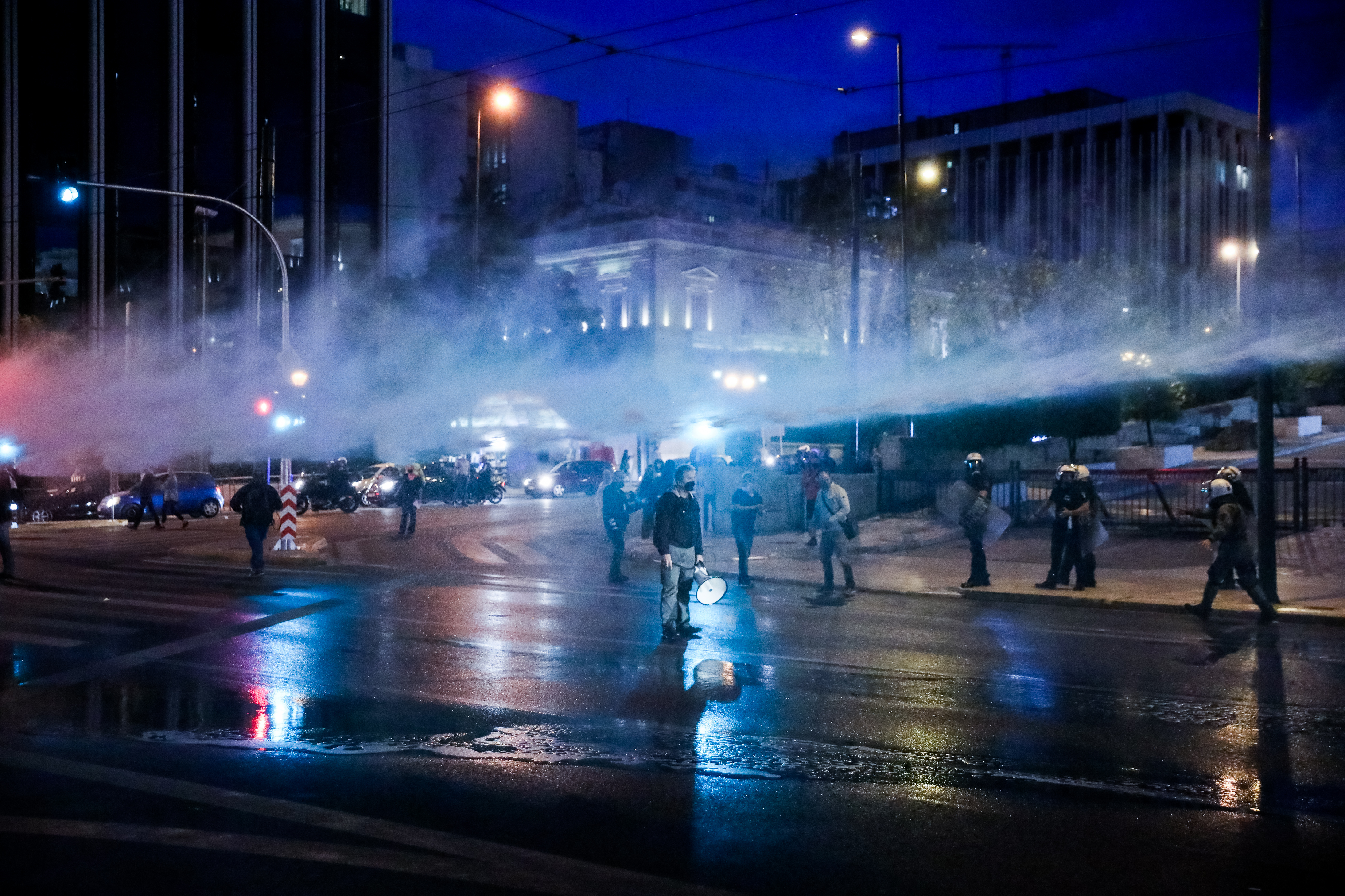 Σύμφωνα με την ΕΛΑΣ, οι αστυνομικές δυνάμεις εμπόδισαν τα περίπου 800 άτομα που επιχείρησαν να κλείσουν την Αμαλίας με αποτέλεσμα να διαμορφωθεί σκηνικό έντασης ενώ έγινε και περιορισμένη χρήση χημικών και ρίψη νερού από το ειδικό όχημα της Αστυνομίας, τον «Αίαντα».
