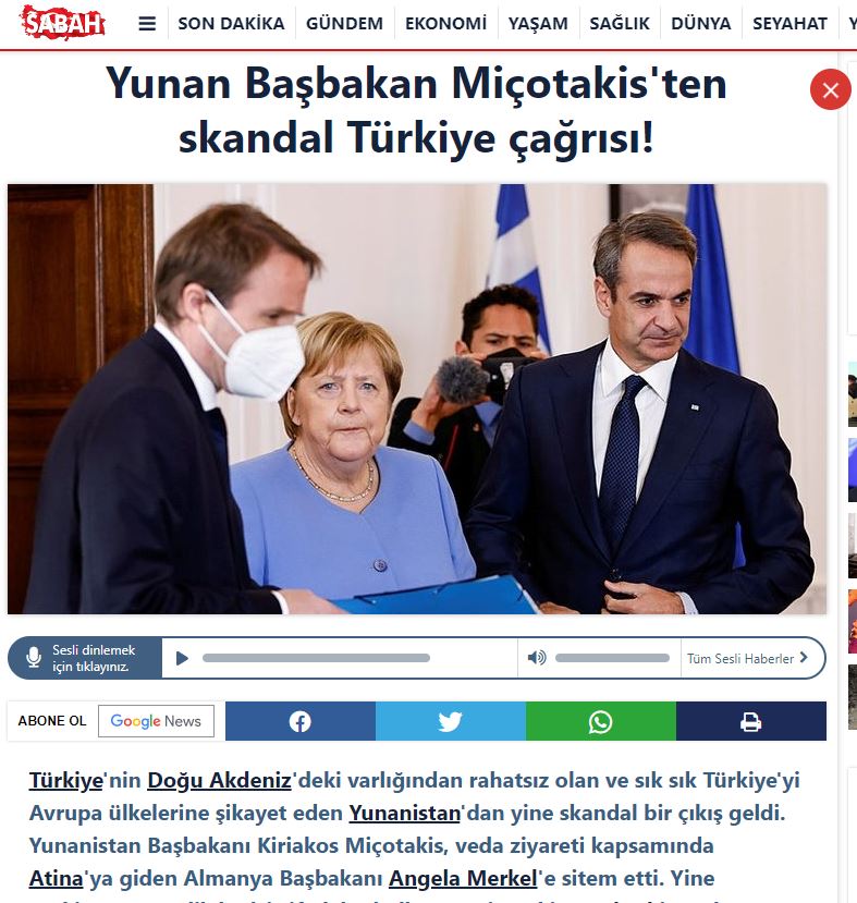 Δυσαρέσκεια προκλήθηκε στην Άγκυρα από τις δηλώσεις του πρωθυπουργού Κυριάκου Μητσοτάκη για την Τουρκία, γεγονός που φαίνεται ξεκάθαρα από τα δημοσιεύματα στον τουρκικό Τύπο που σχολιάζουν τη συνάντηση του Έλληνα πρωθυπουργού με την Γερμανίδα Καγκελάριο.