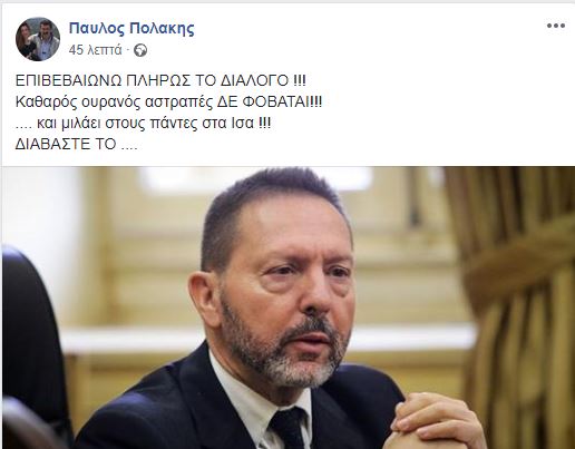 Ο αναπληρωτής υπουργός από την προσωπική του σελίδα στο Facebook λίγο αργότερα επιβεβαίωσε την ύπαρξη τόσο του διαλόγου όσο και αυτών που ακούστηκαν σε αυτόν