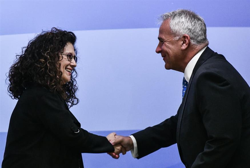 Σε εγκάρδιο κλίμα πραγματοποιήθηκε η τελετή παράδοσης - παραλαβής καθηκόντων του υπουργού Εσωτερικών από τον Μάκη Βορίδη στην υπηρεσιακή υπουργό Καλλιόπη Σπανού.