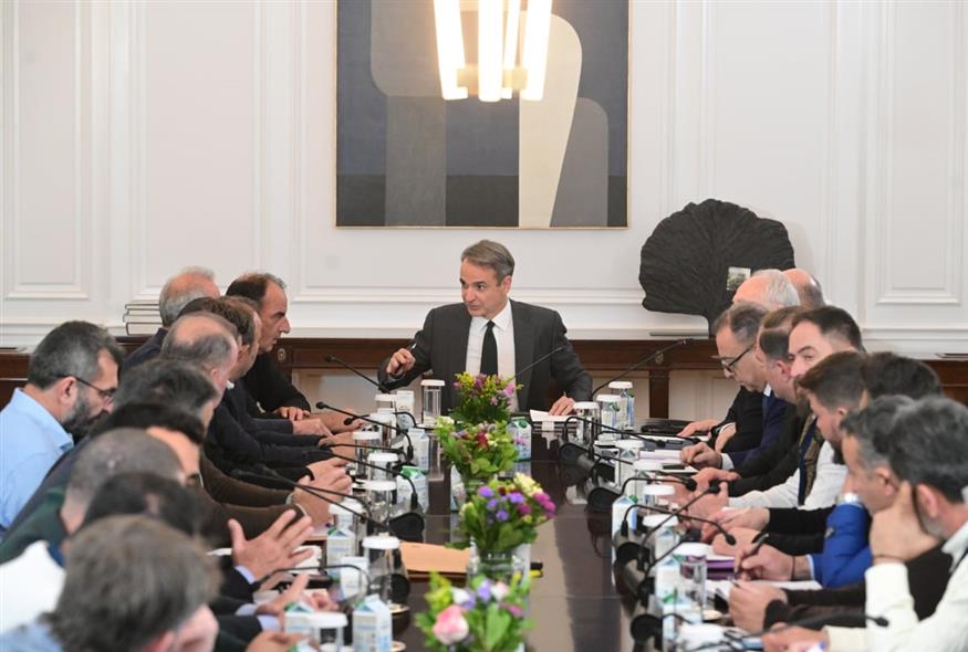 Κυριάκος Μητσοτάκης και εκπρόσωποι των αγροτών στο Μαξίμου (Eurokinissi)