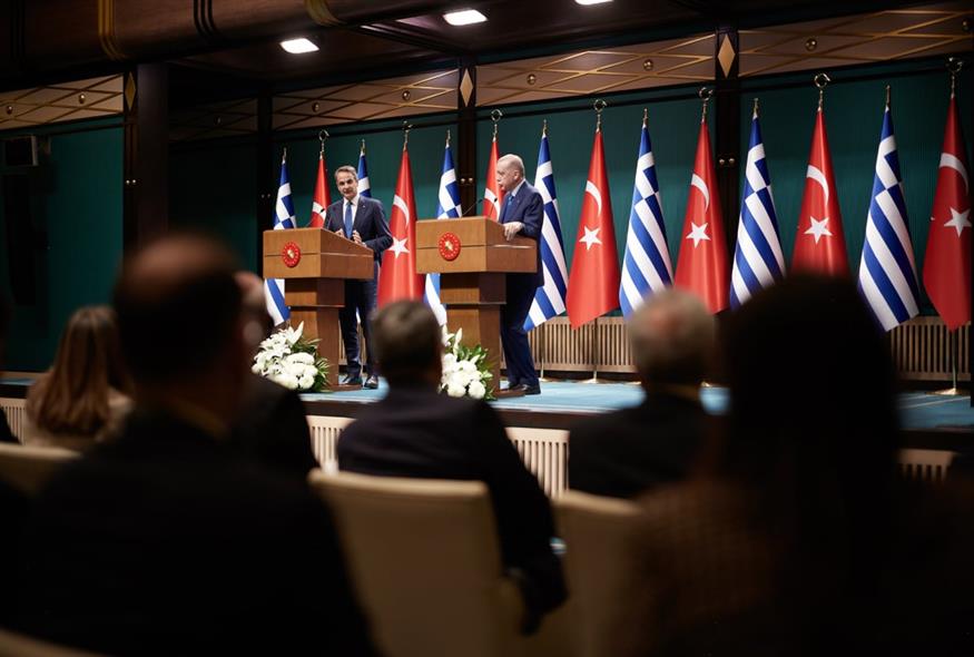 Κυριάκος Μητσοτάκης και Ρετζέπ Ταγίπ Ερντογάν (ΔΗΜΗΤΡΗΣ ΠΑΠΑΜΗΤΣΟΣ/ΓΡΑΦΕΙΟ ΤΥΠΟΥ ΠΡΩΘΥΠΟΥΡΓΟΥ)