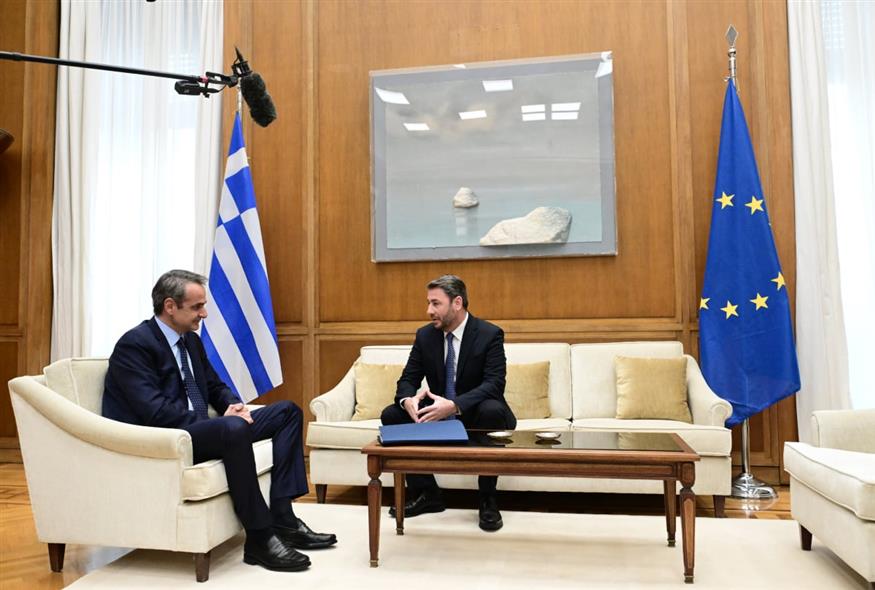 Κυριάκος Μητσοτάκης και Νίκος Ανδρουλάκης (ΤΑΤΙΑΝΑ ΜΠΟΛΑΡΗ/EUROKINISSI)