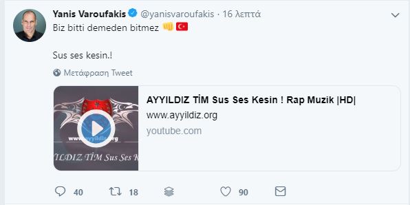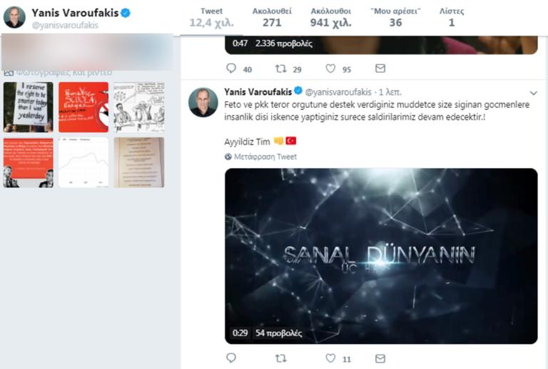 «Ο λογαριασμός μου, για μια ώρα, "κατελήφθη" από φασίστες εκ Τουρκίας που πόσταραν τις βαρβαρότητές τους. Ελπίζω να επανακτήθηκε τώρα», έγραψε χαρακτηριστικά ο κ.Βαρουφάκης. Παρά το γεγονός ότι οι αναρτήσεις κατέβηκαν, λίγη ώρα αργότερα οι χάκερ επανήλθαν με νέο κύμα επίθεσης. Μάλιστα αναφέρουν πως επιτέθηκαν στον πρώην ΥΠΟΙΚ επειδή «είναι υποστηρικτής του Γκιουλέν και των Κούρδων τρομοκρατών του PKK».