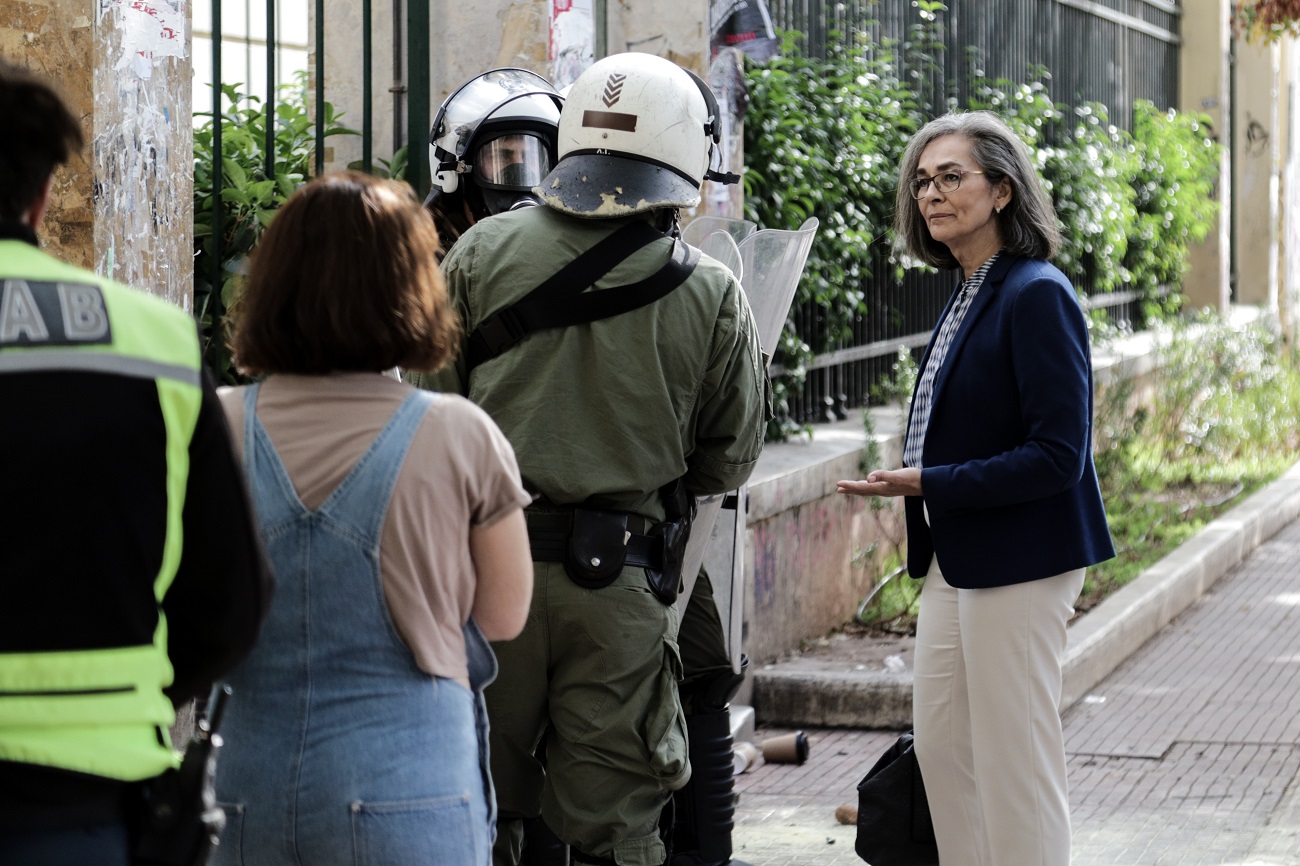 Μάλιστα η κ. Σακοράφα είχε συνομιλία με αστυνομικούς αλλά και τις δυνάμεις των ΜΑΤ. Στην Πατησίων βρέθηκε, επίσης, η βουλευτής του ΣΥΡΙΖΑ, Θεανώ Φωτίου.