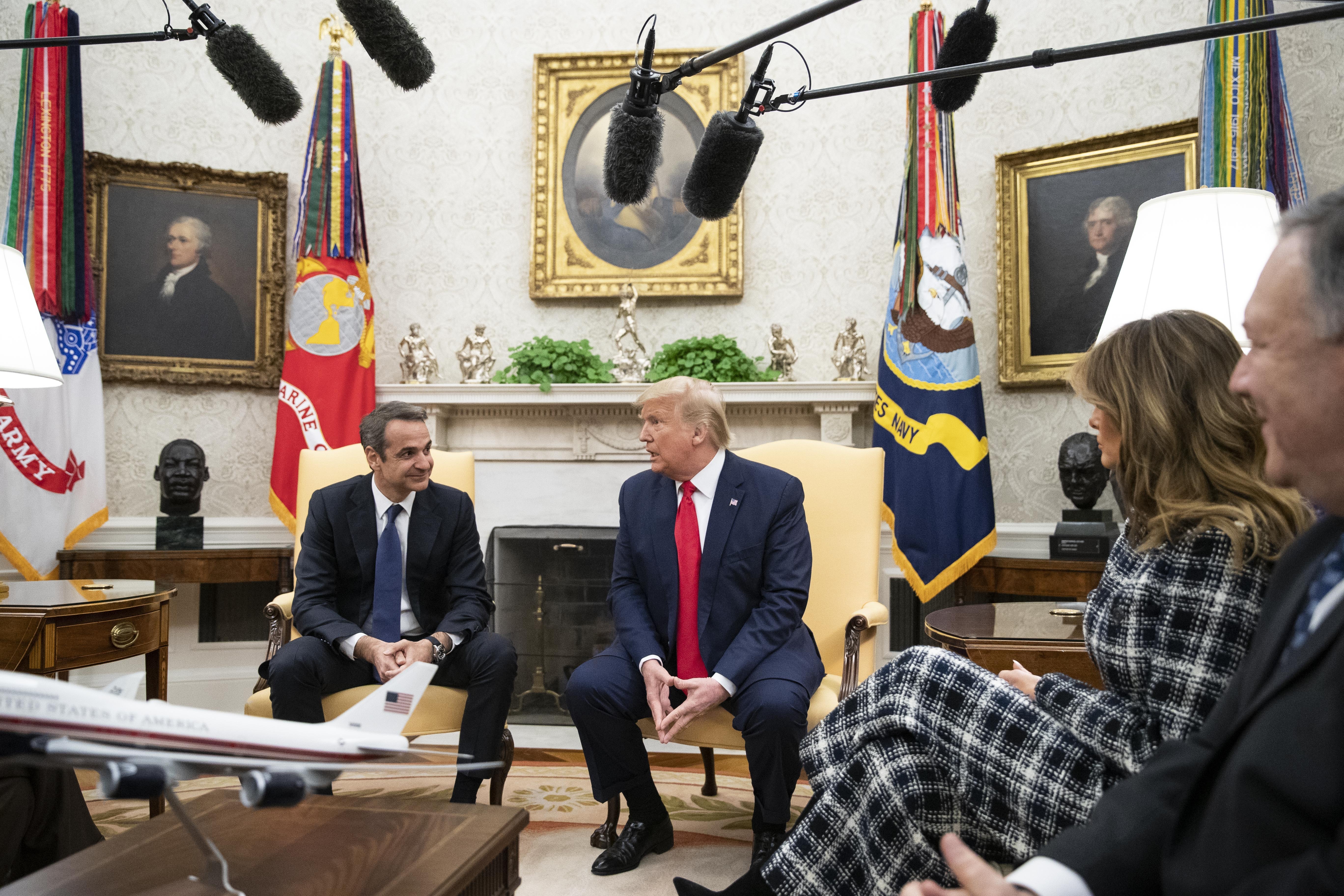 Έφθασε λίγα λεπτά μετά τις 9 το βράδυ (ώρα Ελλάδος) στον Λευκό Οίκο, ο πρωθυπουργός Κυριάκος Μητσοτάκης συνοδευόμενος από τη σύζυγό του Μαρέβα Γκραμπόφσκι - Μητσοτάκη, όπου τους υποδέχθηκαν ο Πρόεδρος των ΗΠΑ Ντόναλντ Τραμπ και η σύζυγός του Μελάνια.