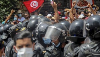 Οι διαδηλωτές θέλουν να ασκήσουν πιέσεις στον Τυνήσιο πρόεδρο προκειμένου να πάρει πίσω τα μέτρα που έλαβε και ξεκίνησαν τον Ιούνιο, όταν ανέστειλε τη λειτουργία του κοινοβουλίου και απομάκρυνε τον πρωθυπουργό, προτού διευρύνει περαιτέρω τις νομοθετικές και εκτελεστικές εξουσίες του και αναστείλει τμήματα του Συντάγματος αυτόν τον μήνα.
