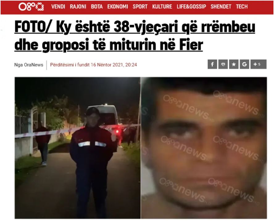 Σύμφωνα με το albaniandailynews.com, κάτοικοι του χωριού ανέφεραν πως είχαν δει νωρίτερα το δράστη μαζί με τον 8χρονο. Αμέσως ξεκίνησαν οι έρευνες, με αστυνομικούς να εντοπίζουν τον 38χρονο και να τον συλλαμβάνουν.