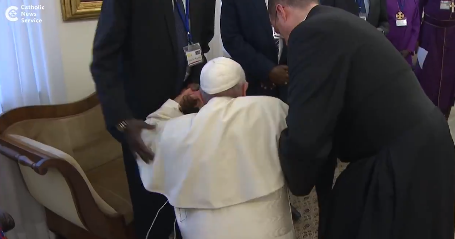 Σε μια πολύ ιδιαίτερη κίνηση προχώρησε την Πέμπτη (12/4) ο Πάπας Φραγκίσκος κατά τη διάρκεια διήμερης συνάντησης στο Βατικανό. Συγκεκριμένα, ο αρχηγός της Καθολικής Εκκλησίας γονάτισε για να φιλήσει τα πόδια των εκπροσώπων των αντιπάλων στρατοπέδων στον εμφύλιο πόλεμο του Νότιου Σουδάν.
