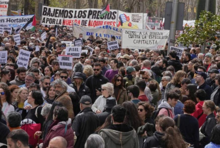 Εκατοντάδες χιλιάδες άνθρωποι διαδήλωσαν σε 40 ισπανικές πόλεις σήμερα Σάββατο για να διαμαρτυρηθούν για την εκτίναξη των τιμών των ενοικίων και την έλλειψη οικονομικά προσιτών κατοικιών σε μια χώρα που απολαμβάνει την ταχύτερη οικονομική ανάπτυξη στην Ευρώπη και ωστόσο υποφέρει από σοβαρή έλλειψη στέγης που επιδεινώνεται από την τουριστική έκρηξη.