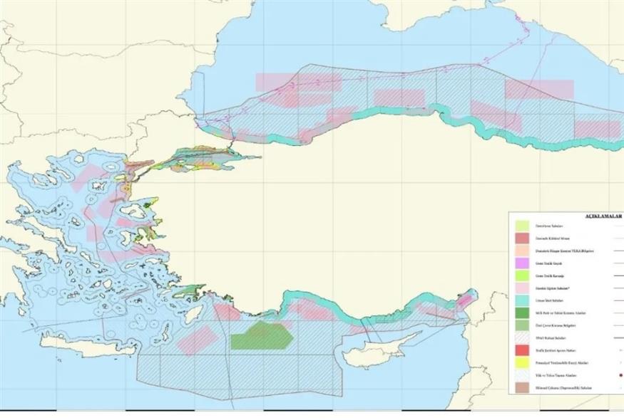 Νέα τουρκική πρόκληση: Ο χάρτης της Άγκυρας με τον Θαλάσσιο Χωροταξικό Σχεδιασμό «παίρνει» το μισό Αιγαίο