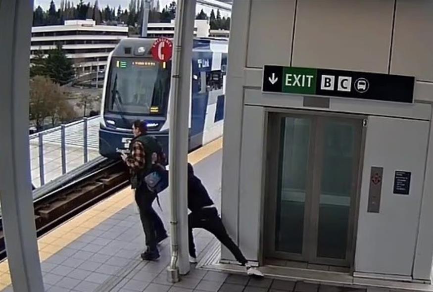 Ένας επιβάτης τρένου βίωσε τον πιο πρωτόγονο φόβο κάθε μετακινούμενου, όταν ένας παρανοϊκός άνδρας έτρεξε πίσω του ενώ εκείνος χάζευε στο κινητό του και προσπάθησε να τον σπρώξει μπροστά σε ένα διερχόμενο τρένο.