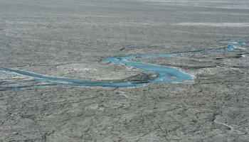Επιστήμονες που βρίσκονται στη νήσο, κατέγραψαν με τον φακό τους τα ποτάμια που προκλήθηκαν από την τήξη των πάγων και στη συνέχεια δημοσίευσαν τις εικόνες στα μέσα κοινωνικής δικτύωσης, με στόχο - έστω και τώρα - να ευαισθητοποιήσουν τον πλανήτη, σε μια απέλπιδα προσπάθεια να σταματήσουν το περιβαλλοντικό έγκλημα που συντελείται.