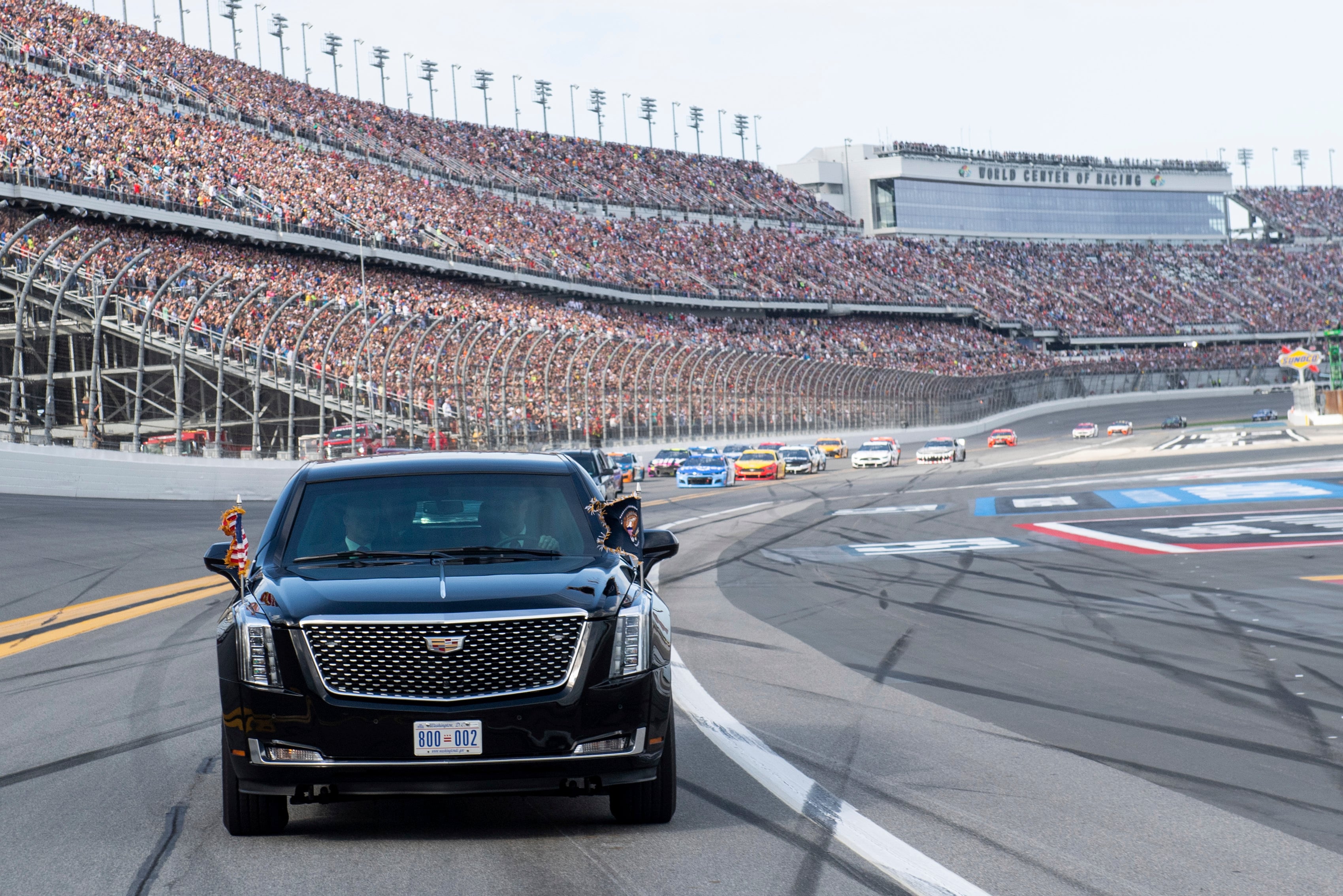 Ο πρόεδρος Ντόναλντ Τραμπ πήγε χθες με την προεδρική του λιμουζίνα γύρω από την πίστα των αγώνων των ειδικά διαμορφωμένων οχημάτων (Daytona 500), προκαλώντας τον ενθουσιασμό των φίλων του πιο δημοφιλούς αγώνα NASCAR, ενώ έφτασε στην Φλόριντα με πτήση του προεδρικού αεροσκάφους Air Force One.