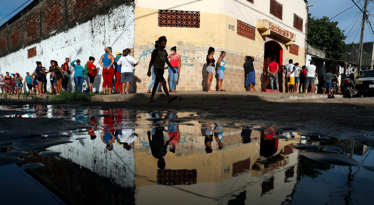 Δεκάδες γυναίκες και άνδρες σχηματίζουν ουρά στην Ασουνσιόν της Παραγουάης για να προμηθευτούν τρόφιμα από μια δομή του υπουργείου Παιδείας, καθώς η εντολή από την κυβέρνηση προς τους πολίτες είναι να παραμείνουν στα σπίτια τους. Μάσκες δεν υπάρχουν ούτε για δείγμα, ενώ ούτε και οι αποστάσεις τηρούνται...