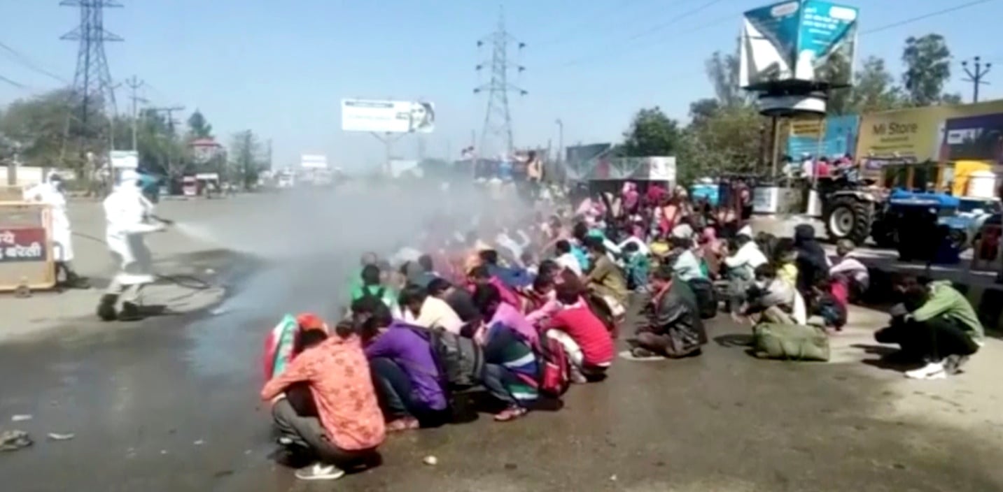 Περιμένοντας στη στάση του λεωφορείου στην πόλη Μπαρέλι της Ινδίας, οι τοπικές αρχές ψεκάζουν τους πολίτες! Την εντολή έδωσε ο δήμαρχος της πόλης προκειμένου να περιοριστεί η διασπορά του κορονοϊού που θερίζει πλέον και την Ινδία, όπου έχει επιβληθεί απαγόρευση κυκλοφορίας.