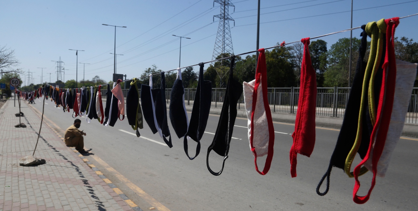 Ενας πλανόδιος πωλητής στη Λαχόρη του Πακιστάν έχει απλώσει την πραμάτεια του -δεκάδες μάσκες- κατά μήκος του άδειου δρόμου μετά το lockdown που επέβαλαν οι τοπικές αρχές.