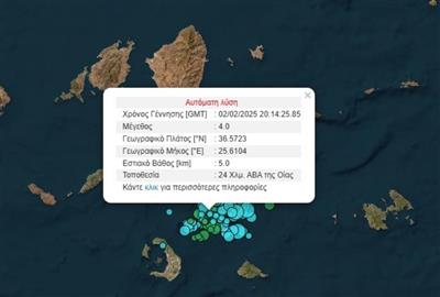 Συνεχίζονται η σεισμική δραστηριότητα στην περιοχή