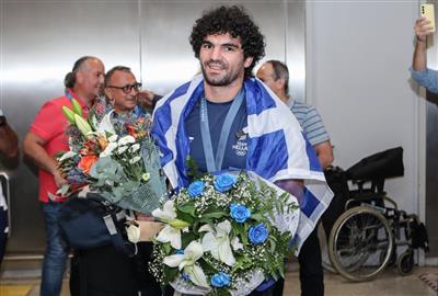 Στην Αθήνα ο χάλκινος Ολυμπιονίκης, Θόδωρος Τσελίδης - Θερμή υποδοχή στο αεροδρόμιο