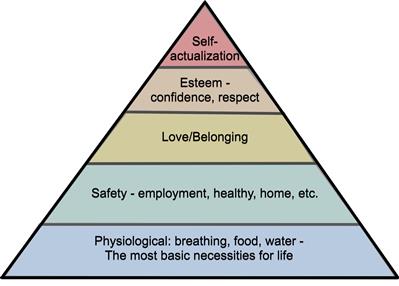 Στα κατώτερα επίπεδα της πυραμίδας βρίσκονται οι βασικότερες ανθρώπινες ανάγκες, ενώ οι πιο σύνθετες ανάγκες εντοπίζονται στην κορυφή της