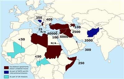 Στρατιωτική παρουσία σε συνολικά 15 χώρες, σε άλλες μέσω του ΝΑΤΟ και σε άλλες (τις περισσότερες) μέσω «διμερών συμφωνιών», εμφανίζεται να έχει η Τουρκία εν έτει 2020, όπως προκύπτει μέσα από τις αναρτήσεις τουρκικών «παραγόντων» στα social media