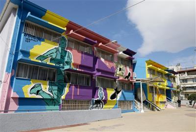Ένας δρομέας, ένας μπασκετμπολίστας με κινητικά προβλήματα, ένας αθλητής skate, ένας ποδοσφαιριστής και μία κολυμβήτρια ξεπρόβαλαν στην πρόσοψη του 101ου Δημοτικού Σχολείου