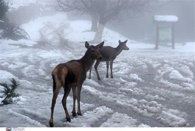 Πανέμορφες εικόνες από την Πάρνηθα: Ελάφια τρέχουν στο χιονισμένο τοπίο