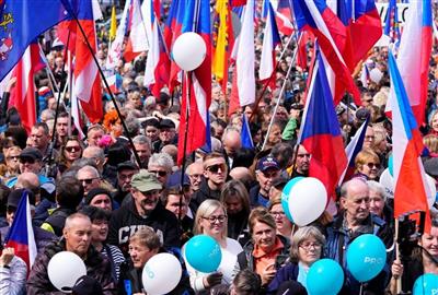 Αντικυβερνητική διαδήλωση στην Πράγα για τον υψηλό πληθωρισμό και το κόστος ενέργειας