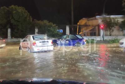 Σε ποτάμια μετατράπηκαν οι δρόμοι στην Πάτρα εξαιτίας της σφοδρής βροχόπτωσης που πλήττει την περιοχή από νωρίς το απόγευμα