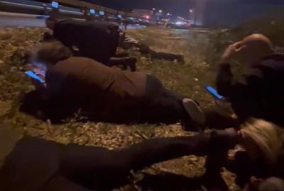 Βουλευτές αποβιβάσθηκαν από τα οχήματα που τούς μετέφεραν και ξάπλωσαν στην άκρη του δρόμου, προκειμένου να καλυφθούν