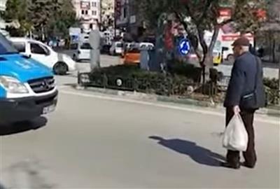 Όταν κάποιος από το όχημα κατέβηκε για να του προτείνει να τον πάει σε έναν αρμόδιο να τα πει, ο παππούς εξεγέρθηκε
