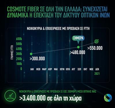 COSMOTE: Ξεπέρασαν τις 480.000 οι γραμμές οπτικής ίνας μέχρι το σπίτι