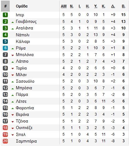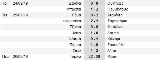 Στη Serie A, η Γιουβέντους παρέμεινε για σχεδόν ένα 24ωρο την επιστροφή της στη κορυφή, καθώς η Ιντερ επέστρεψε σε αυτή με τη νέα της νίκη, αυτή τη φορά απέναντι στη Λάτσιο και συνεχίζει να έχει το απόλυτο από το ξεκίνημα της σεζόν.