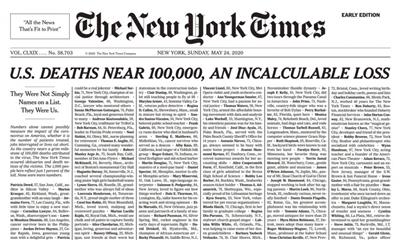 Αυτό το πρωτοσέλιδο μένει να γίνει μάθημα για όλους ότι οι ανθρώπινες απώλειες δεν είναι απλώς νούμερα που προκύπτουν από τη φονική πανδημία του κορονοϊού