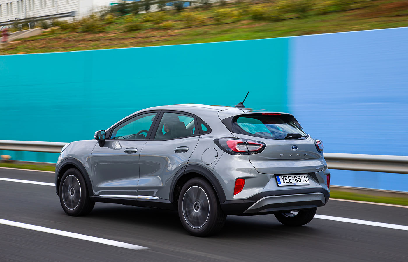Το Puma δοκιμάζει την τύχη του στην ελληνική αγορά, σε πρώτη φάση, με έναν και μοναδικό κινητήρα σε δύο εκδόσεις με 125 η 155 ίππους (αργότερα θα ακολουθήσει και diesel έκδοση), που και στις δύο περιπτώσεις είναι υπεραρκετοί για να κινήσουν γρήγορα ή ακόμα πιο γρήγορα το όμορφο μοντέλο. Και οι δύο ενσωματώνουν ήπια υβριδική τεχνολογία και αυτό σημαίνει διαθέτουν έναν μικρό ηλεκτροκινητήρα 48 Volt που τροφοδοτείται από μία μπαταρία λιθίου η οποία βρίσκεται στο πίσω μέρος του αυτοκινήτου. Αυτός ο ηλεκτροκινητήρας συνδέεται με το στροφαλοφόρο άξονα του γνωστού τρικύλινδρου και βραβευμένου EcoBoost κινητήρα υποβοηθώντας τον κατά την επιτάχυνση και ανακτώντας ενέργεια κατά την επιβράδυνση προκειμένου να φορτίζεται η μπαταρία. Αυτή η διαδικασία είναι που συμβάλλει τελικά στη μείωση της κατανάλωσης και των εκπομπών ρύπων και δίνει τον όποιο οικολογικό χαρακτήρα μπορεί κανείς να πει ότι διαθέτει αυτό το αυτοκίνητο. Το σημαντικό είναι ότι ο ηλεκτροκινητήρας παρεμβαίνει στη λειτουργία του αυτοκινήτου χωρίς καμία προσπάθεια από την πλευρά του οδηγού. Σημειώστε ότι όλες οι εκδόσεις του μοντέλου είναι αποκλειστικά προσθιοκίνητες.
