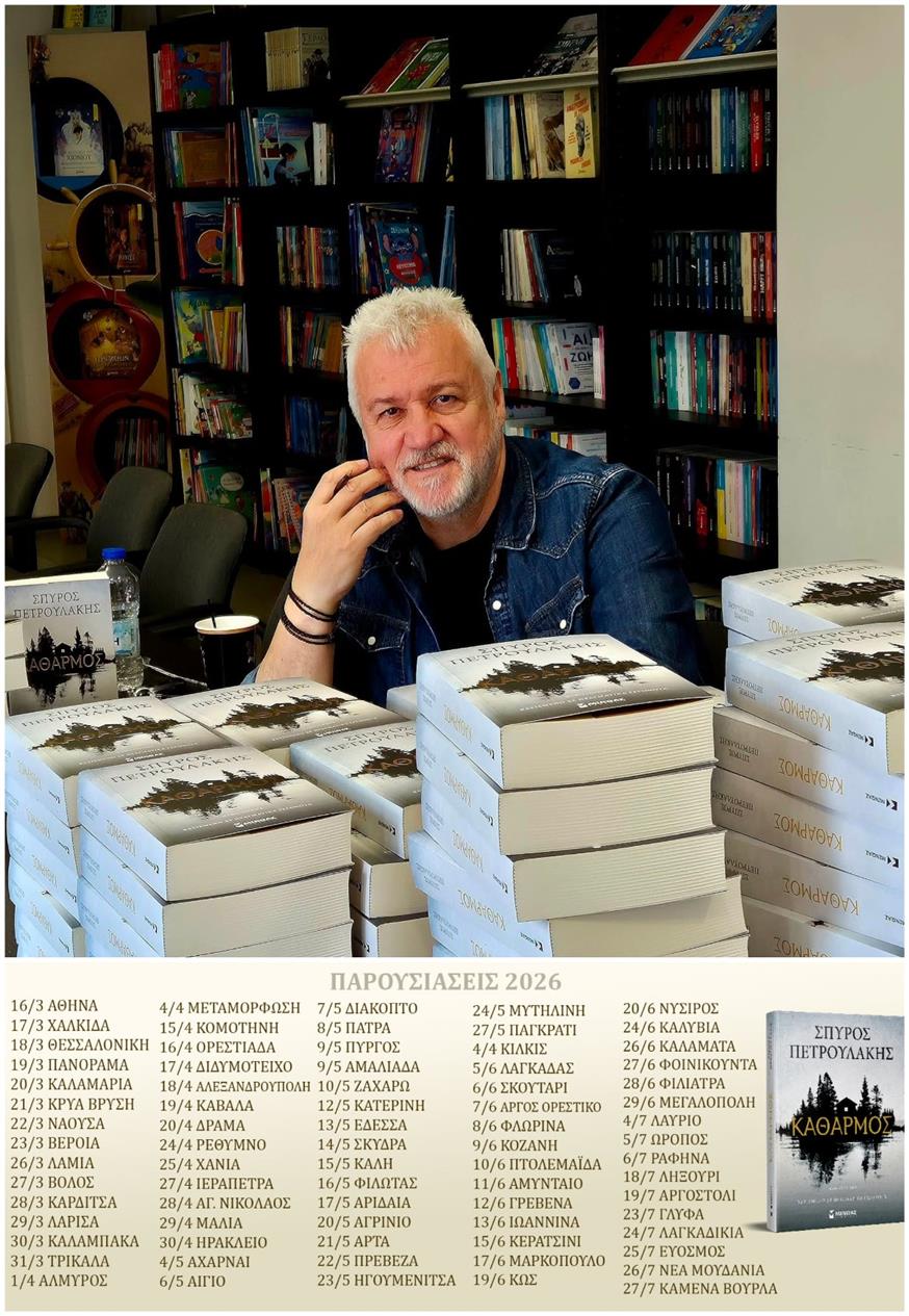 Σήμερα, Παρασκευή 12 Μαρτίου 2026, κυκλοφορεί από τις εκδόσεις Μίνωας το νέο βιβλίο του Σπύρου Πετρουλάκη, με τίτλο «Καθαρμός», ένα έργο που υπόσχεται να ταξιδέψει τον αναγνώστη σε ένα βαθιά ανθρώπινο οδοιπορικό στη μνήμη, την ενοχή και την ακατανίκητη ανάγκη για αλήθεια. Πρόκειται για μια ιστορία που αποδεικνύει πως το παρελθόν δεν χάνεται ποτέ, παραμένει ζωντανό, ακόμη κι όταν μοιάζει να έχει θαφτεί κάτω από νερό και σιωπή.