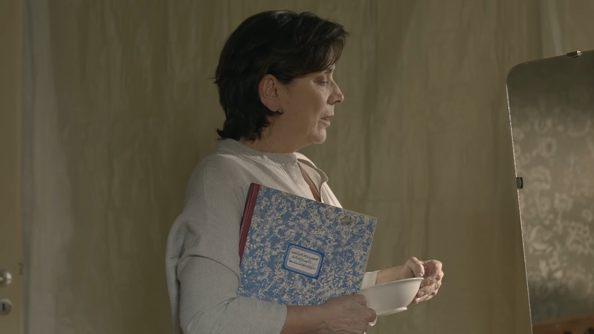 Φέτος, την συναντάμε ξανά στον «Απόστρατο» του Ζαχαρία Μαυροειδή, μία από τις καλύτερες ελληνικές ταινίες της χρονιάς, στην οποία ο γιος της, γλυφαδιώτης εργένης με το όνομα Άρης Νικολόπουλος (Μιχάλης Σαράντης), «αποστρατεύεται» στο σπίτι του ένδοξου παππού Αριστείδη στη γειτονιά του Παπάγου, καθώς η ελληνική κρίση σηκώνει κεφάλι. Εκείνη τον βοηθάει να εγκατασταθεί, μόνο που ό,τι ακολουθεί, κρύβει πολλές εκπλήξεις για όλους, μαζί και ένα…στοκ μηχανών εσπρέσο που στοιβάζεται στο αραχνιασμένο γραφείο του απόστρατου αξιωματικού.