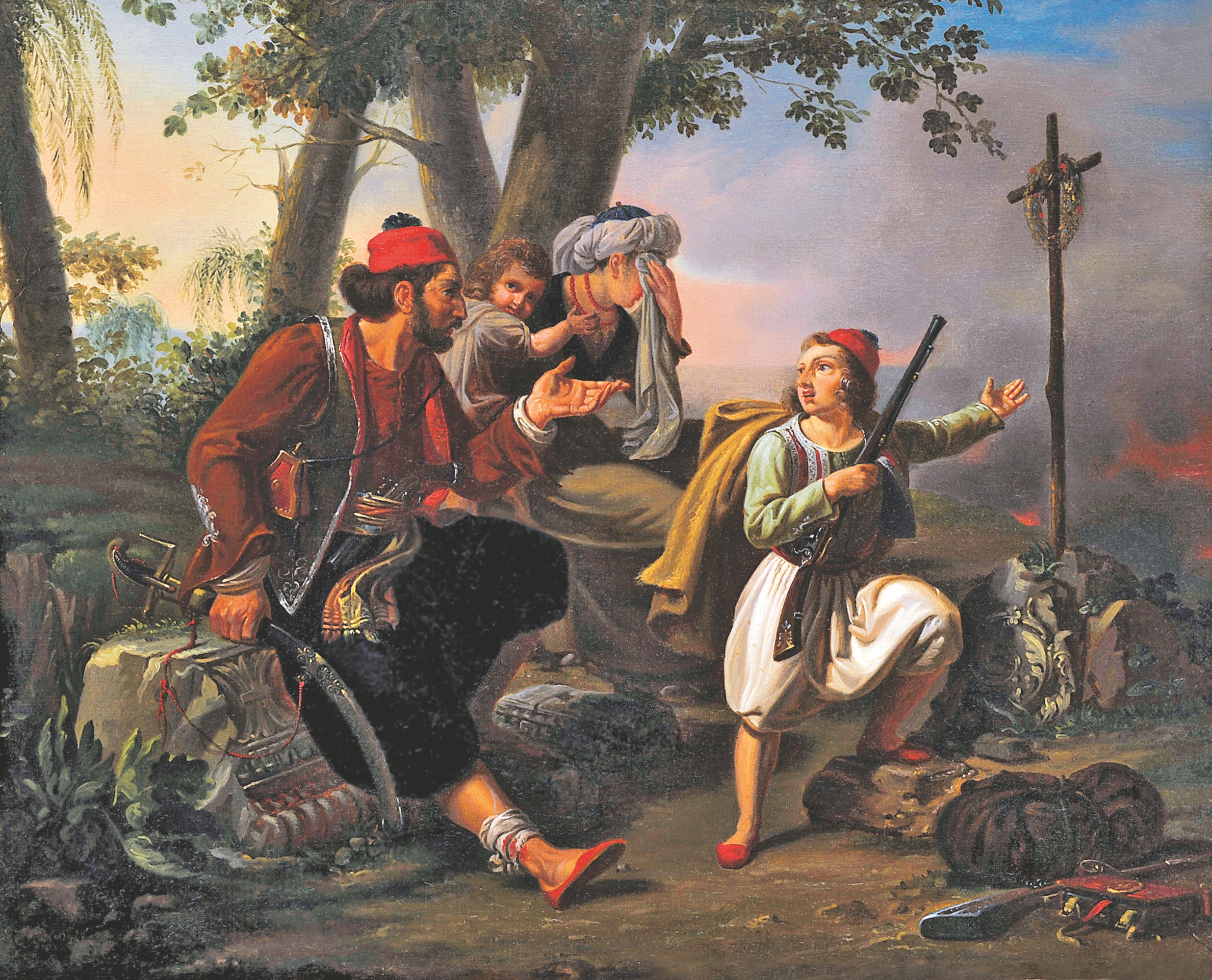 Η αρχαία Ελλάδα, η οποία πρωταγωνιστούσε στις δημιουργίες που είχαν φιλοτεχνήσει οι ζωγράφοι των προηγούμενων αιώνων, εξακολούθησε να δίνει το «παρών» στις φιλελληνικές συνθέσεις, αλλά με διαφορετικούς υπαινιγμούς. Οι νέες, αρχαιόφιλες, φιλελληνικές εικόνες συνιστούν υπομνήσεις της κλασικής κληρονομιάς, που αποτελούσε κινητήρια δύναμη για τους αγωνιζόμενους Ελληνες και την οποία υπερασπίζονταν με μια αυτοθυσία αντάξια των προγόνων τους. Ερειπωμένοι ναοί και σπασμένες κολόνες σηματοδοτούν τις φιλελληνικές παραστάσεις, υποδουλώνοντας την παρουσία του κλασικού παρελθόντος, που συνδαυλίζει την αγωνιστική διάθεση των πρωταγωνιστών. «Μια συλλογή αξιολογείται στο σύνολό της. Οσο περισσότερα έργα έχεις, τόσο το καλύτερο» μου επισημαίνει. Στον πίνακα με τον τίτλο «Ελληνας στον τάφο του Θεμιστοκλή», η παρουσία του νεαρού αγωνιστή δίπλα στο μνημείο του αρχαίου ήρωα υποδηλώνει τη διάθεσή του να διαιωνίσει επάξια το όνομα του γενναίου προγόνου του. Παράλληλα, για τον αγωνιζόμενο Ελληνα, ο αγώνας για την οικογένεια, την πατρίδα και για τη θρησκεία είναι κοινός. Στην ελαιογραφία με τον τίτλο «Η αναχώρηση του νεαρού αγωνιστή», ο νεαρός πολεμιστής αναχωρεί για τη μάχη έχοντας δώσει όρκο στον ξύλινο σταυρό, ο οποίος είναι καρφωμένος μέσα σε ένα αρχαίο κιονόκρανο.