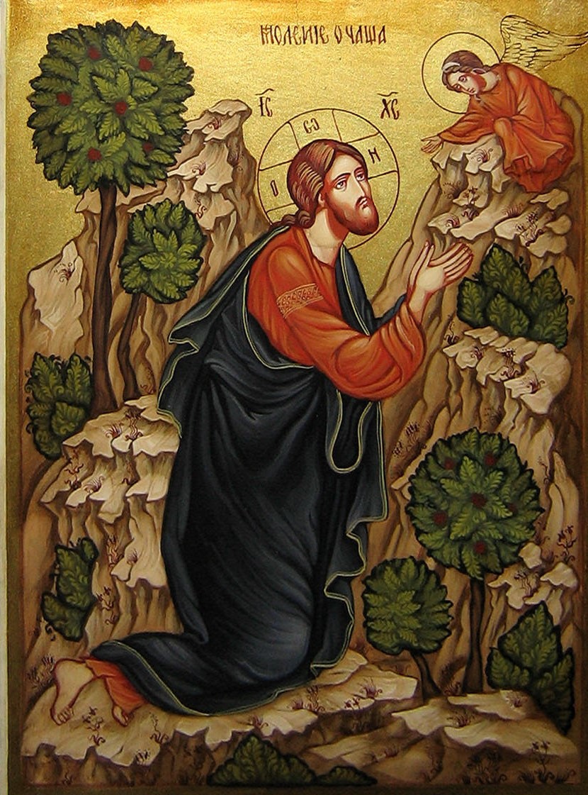 Μετά το δείπνο βγήκαν όλοι στο όρος των Ελαιών, όπου ο Χριστός τους δίδαξε τα ανήκουστα και τελευταία μαθήματα και αρχίζει να αγωνιά και να ανυπομονεί. Αναχωρεί μόνος Του και, γονατίζοντας, προσεύχεται εκτενώς. Από την πολλή αγωνία γίνεται ο ιδρώτας Του σαν σταγόνες πηχτού αίματος, οι οποίες έπεφταν στη γη. Μόλις συμπληρώνει την εναγώνια εκείνη προσευχή, φθάνει ο Ιούδας με ένοπλους στρατιώτες και πολύ όχλο και αφού χαιρετάει και φιλάει πονηρά το δάσκαλό Του, Τον παραδίδει.