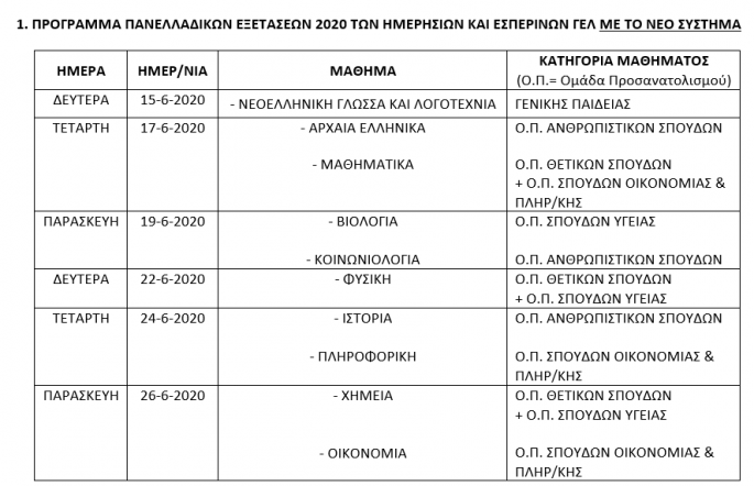 Το πρόγραμμα ολοκληρώνεται με την εξέταση στις 26/6 στην Χημεία (ΟΠ Θετικών Σπουδών και Σπουδών Υγείας) και την Οικονομία (ΟΠ Σπουδών Οικονομίας και Πληροφορικής).