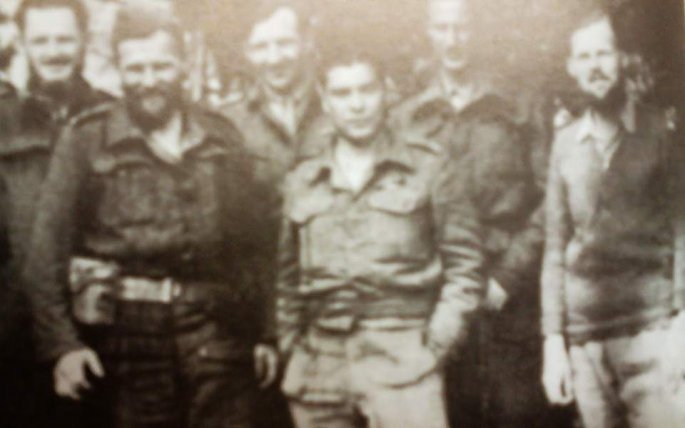 (Μέλη της Βρετανικής Συμμαχικής Αποστολής. Από δεξιά προς αριστερά: Κ. Γουντχάουζ, Ρ. Σέπαρντ, Θ. Μαρίνος, Τ. Στήβενς, Τ. Μπαρνς, Α. Εντμοντς (φωτογραφία από «Ελληνικά Χρονικά»)