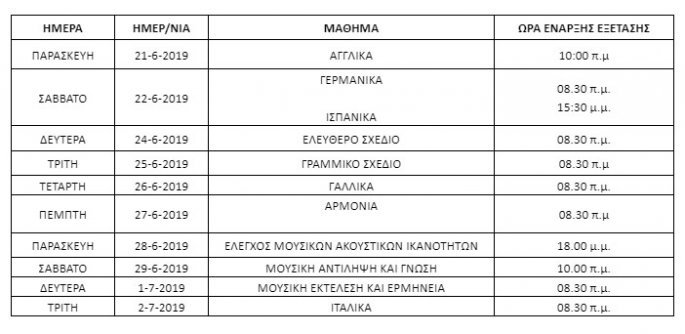 ΠΡΟΓΡΑΜΜΑ ΕΞΕΤΑΣΕΩΝ ΕΙΔΙΚΩΝ ΜΑΘΗΜΑΤΩΝ και ΜΟΥΣΙΚΩΝ ΜΑΘΗΜΑΤΩΝ 2019 ΓΙΑ ΓΕΛ & ΕΠΑΛ