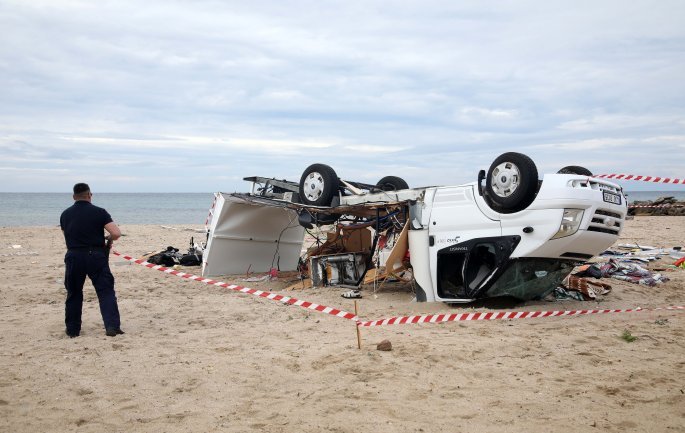 Tο όχημα φαίνεται πως ανατράπηκε από σφοδρούς ανέμους.