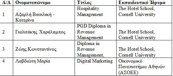 Η ΑΜΚΕ «Νίκος Δασκαλαντωνάκης – NDF», στο πλαίσιο των εκπαιδευτικών δράσεων της, ανακοινώνει, επίσης, τις χορηγίες για μετεκπαίδευση σε στελέχη και εργαζόμενους στον Όμιλο Grecotel.