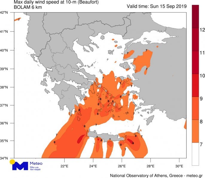 Μικρή εξασθένηση των ανέμων αναμένεται από τις μεσημεριανές ώρες της Κυριακής (15/9) και έπειτα.