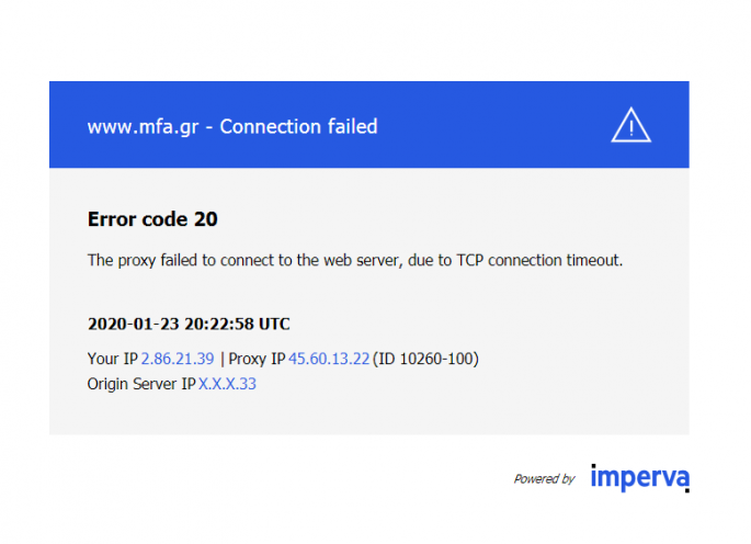 Εκτός λειτουργίας γύρω στις 21:00 το βράδυ της Πέμπτης (23.1.2020) τέθηκαν κυβερνητικές ιστοσελίδες, από άγνωστη, μέχρι στιγμής, αιτία, ενώ σύμφωνα με πληροφορίες έχουν τεθεί εκτός λειτουργίας και άλλες κυβερνητικές ιστοσελίδες.
